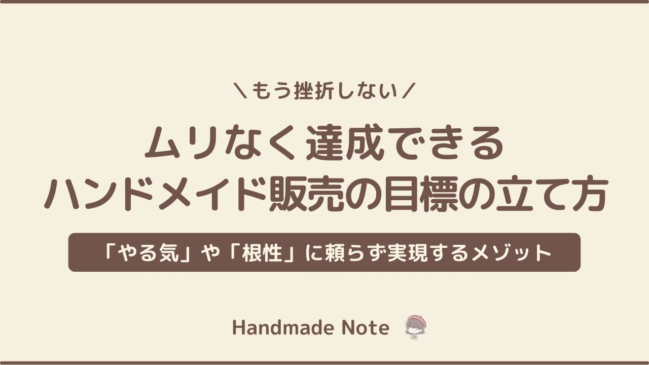 この記事では、ハンドメイド作家さんに向けて、やる気や根性に頼ることなく、ムリせず達成できる目標の立て方について詳しくご紹介しています。挫折してしまった経験のある人にこそ読んでほしい内容となっていますので、ぜひ実践してみて、夢を実現させてください。